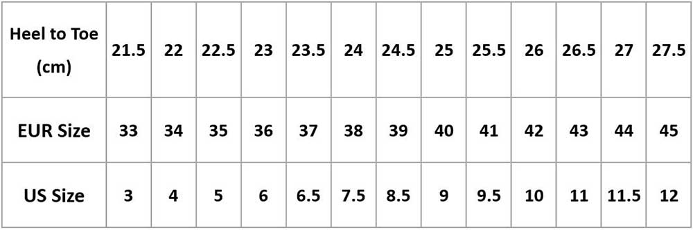 Attention: Please Measure Carefully Your Feet Length From Heel to Toe and Compare with Our Size Guide So You Choose Correct Size.