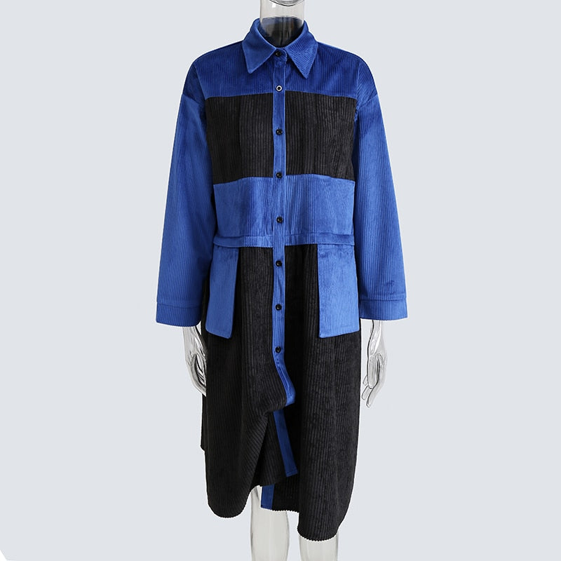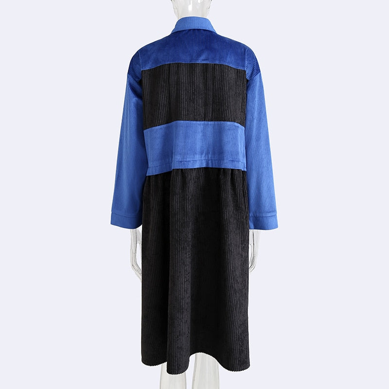 Vestido midi con cuello vuelto y color liso, patrón de rayas y material de rayón de algodón