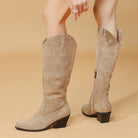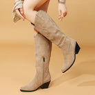Khaki Flock Zipper Knee High Boots