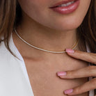 Made from high-quality 925 sterling silver, the Kisses Down My Neck Tennis Necklace exudes bold elegance. Its sleek design hugs the neckline with a confident sparkle, perfect for those who dare to stand out and make a statement. Elevate your look with this fearless accessory that blends timeless style with a modern edge.