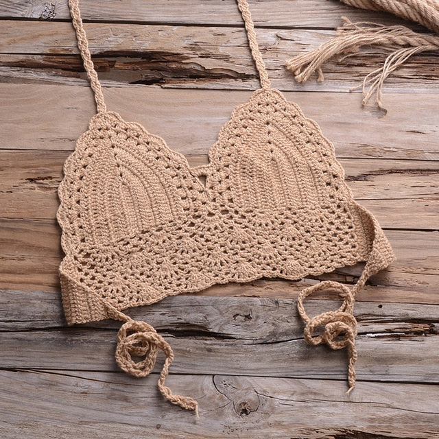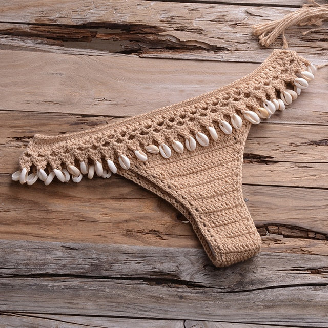 Bikini de ganchillo de algodón con decoración de conchas de mar