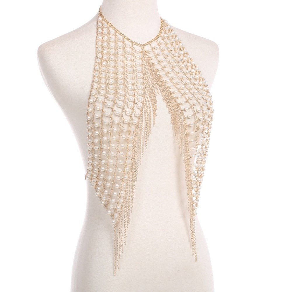 Camiseta sin mangas de cadena de perlas decoradas con borlas de patrón geométrico