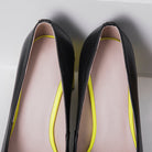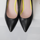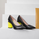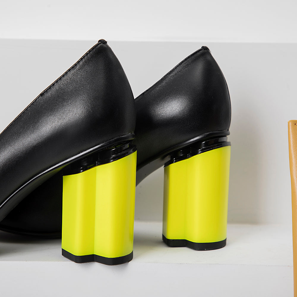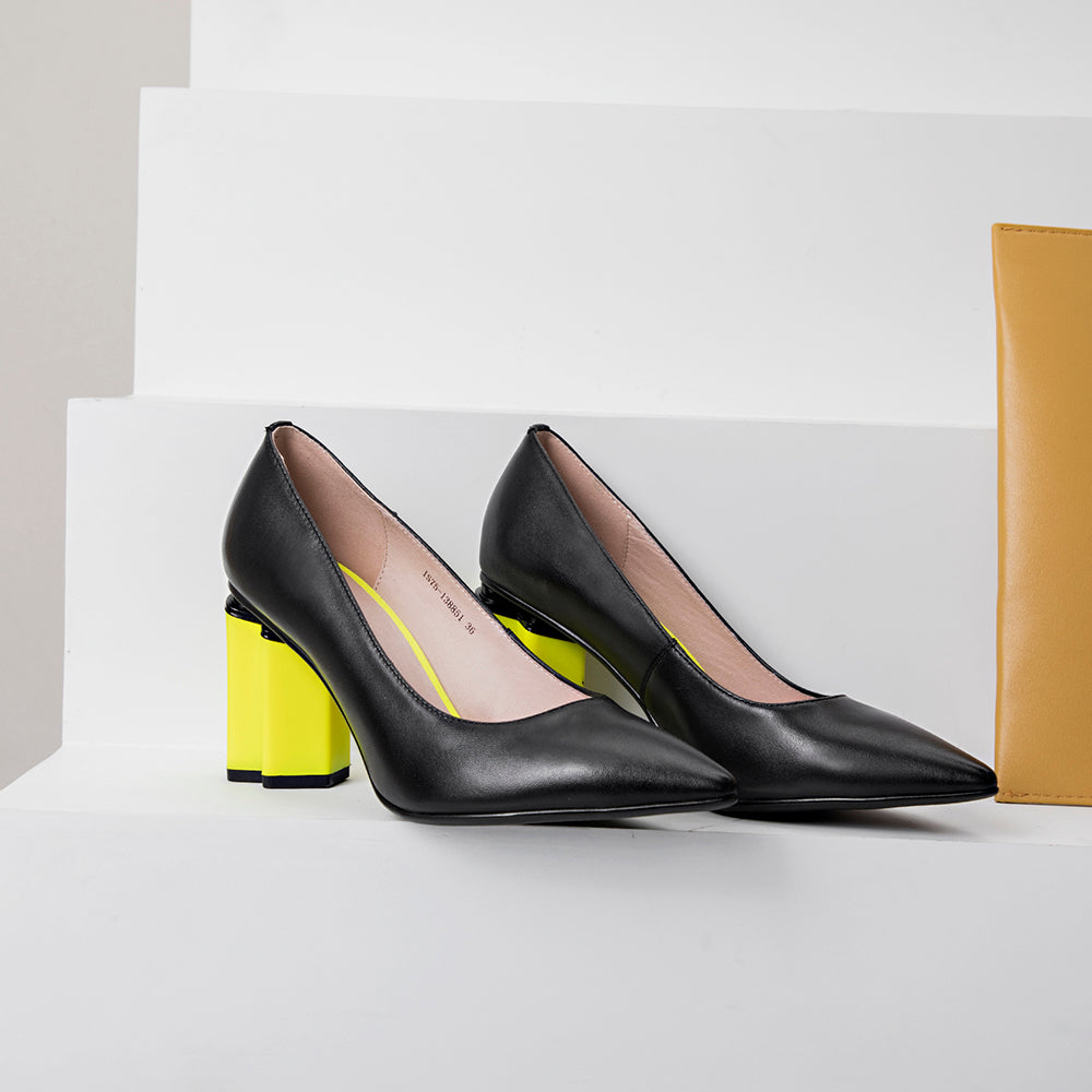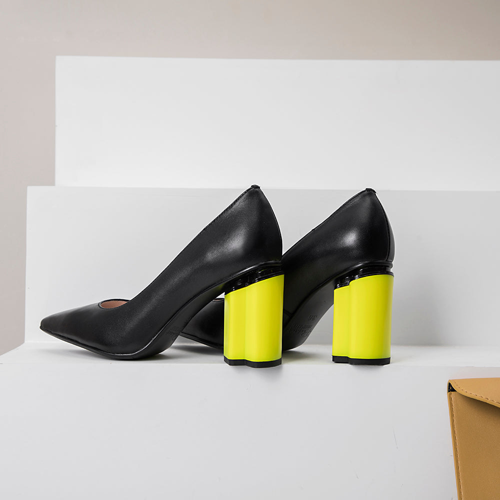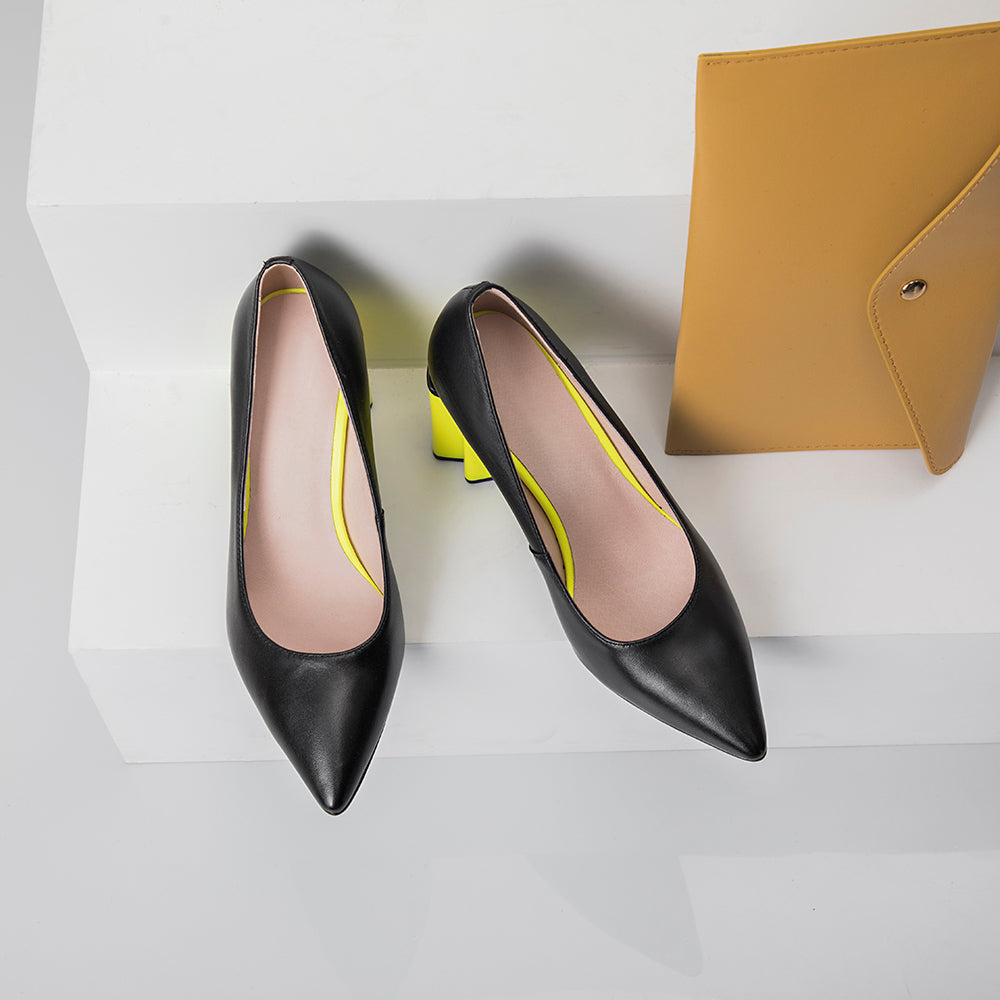 Zapatos de salón sin cordones de cuero de vaca genuino sólido con tacones gruesos únicos y punta puntiaguda