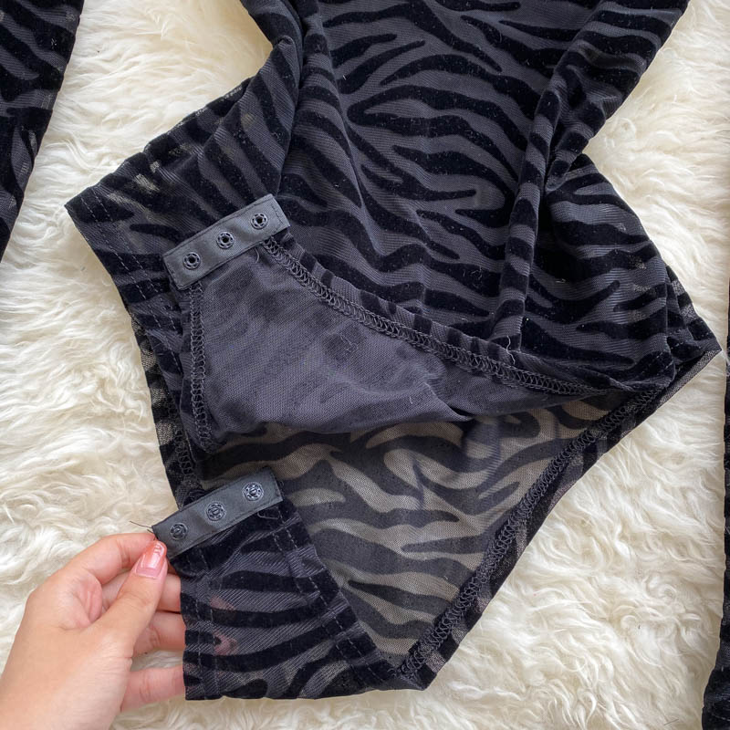 This bodysuit has a unique wave pattern that is sure to get noticed. It's made from a soft fabric that is lightweight and breathable. The see-through design is great for layering and adds a little color to your outfit.