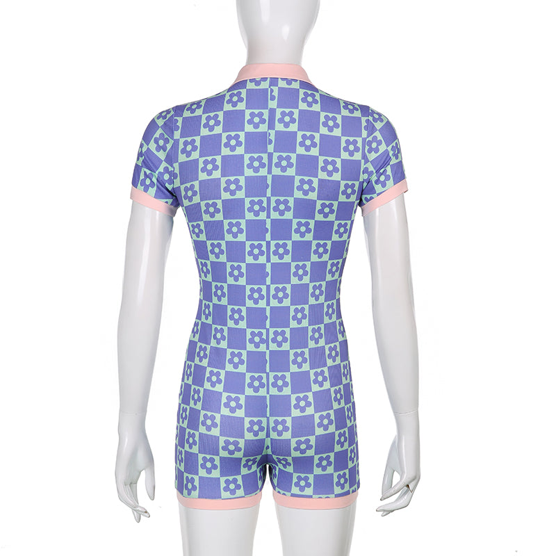 This romper is an essential piece for any summer wardrobe. A trendy floral pattern with a geometric design is a fun way to give your look a pop of color. This easy-to-wear piece pairs well with any top for a versatile look. Lightweight and breathable, this casual piece is designed to keep her comfortable all day long. A button design ensures this piece is secure and flattering.