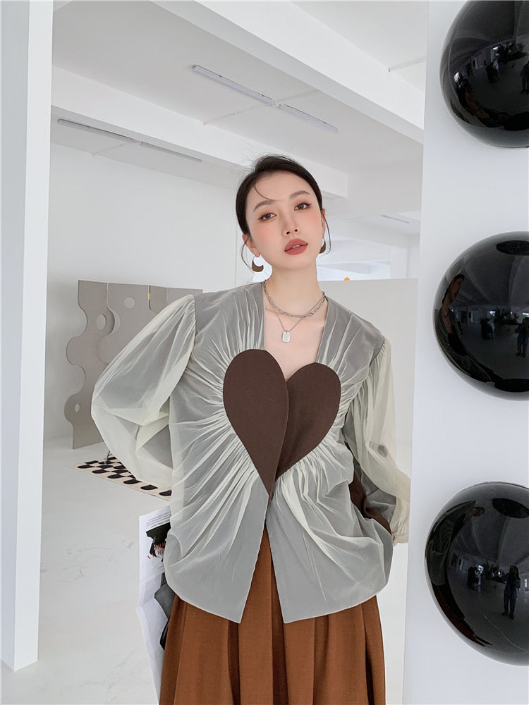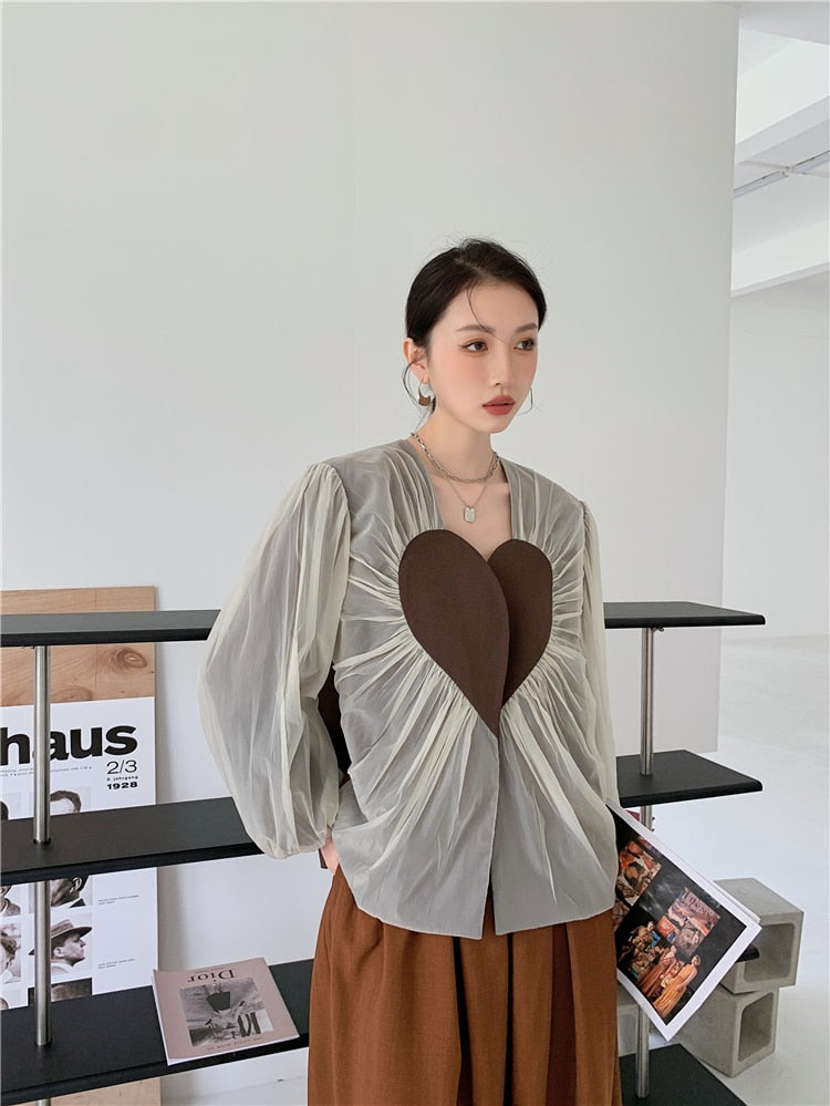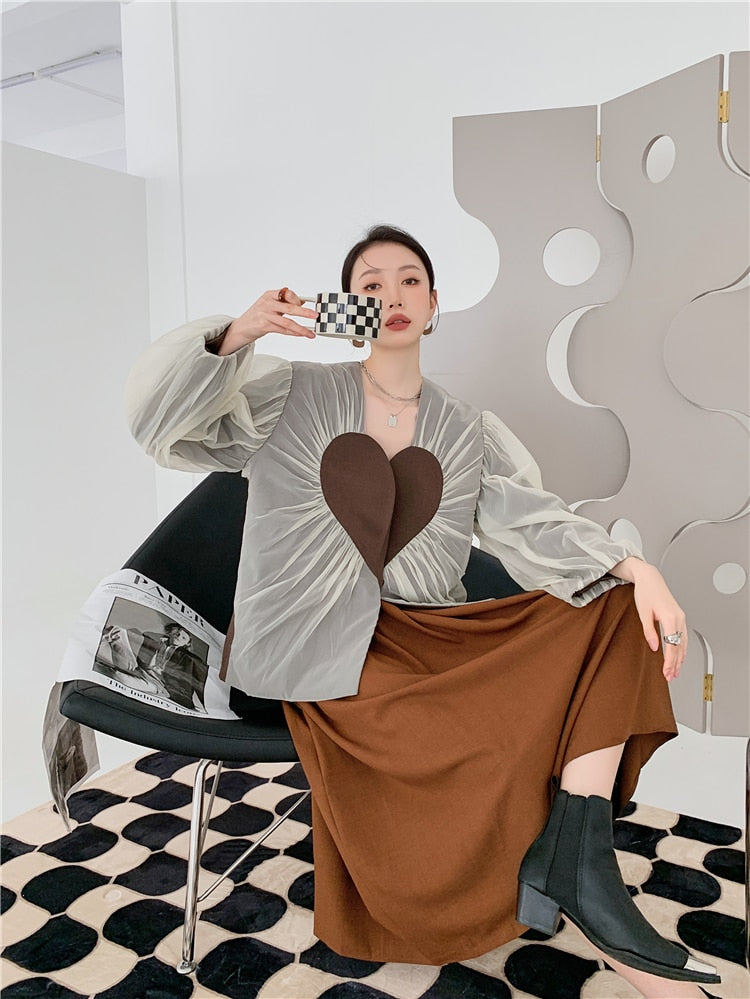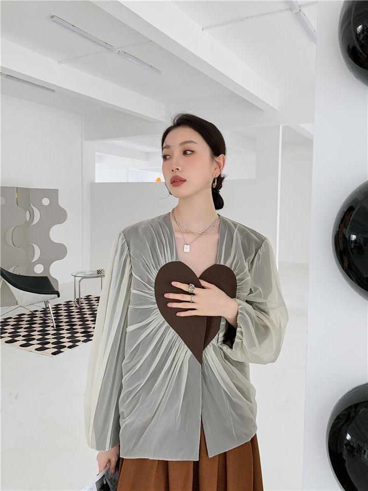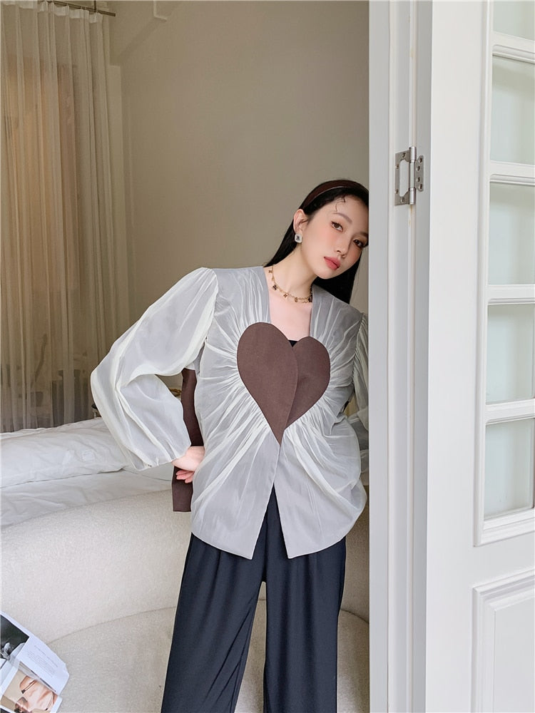 This blazer is perfect for any formal occasion. It has a V-neck and long sleeves to keep you warm. The heart design on the front is a great detail that will make you stand out.