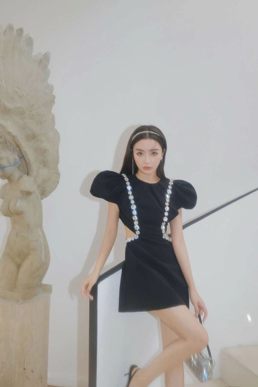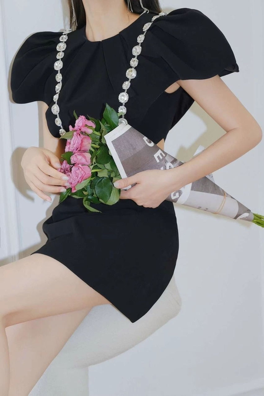 This is a trendy, modest and elegant women's dress that is well-suited for a variety of occasions. The A-line design is flattering and will add a sense of style to any look. The feminine hollow-out design is perfect for any social occasion. The puffed sleeves are delicate and softly draped. The soft black color is a versatile choice that looks good with anything.