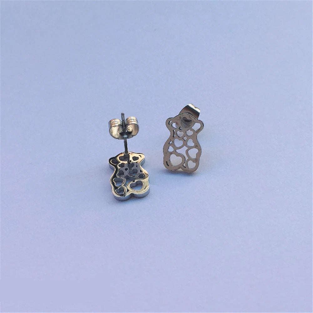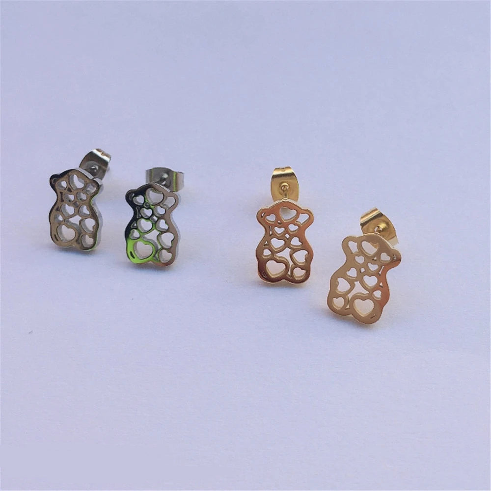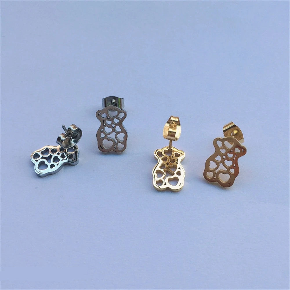 <transcy>Pendientes de mujer de acero inoxidable con forma de oso dorado moderno</transcy>