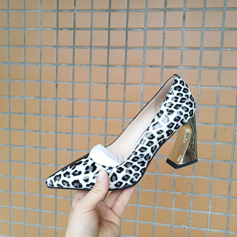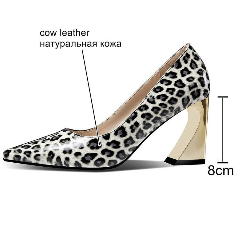 Zapatos de salón en piel auténtica con estampado de leopardo