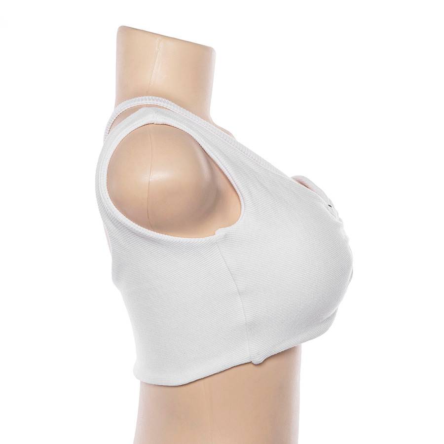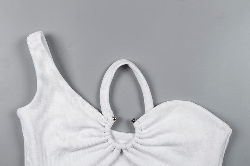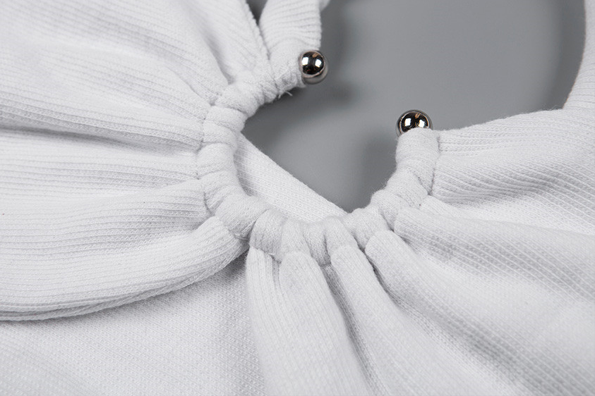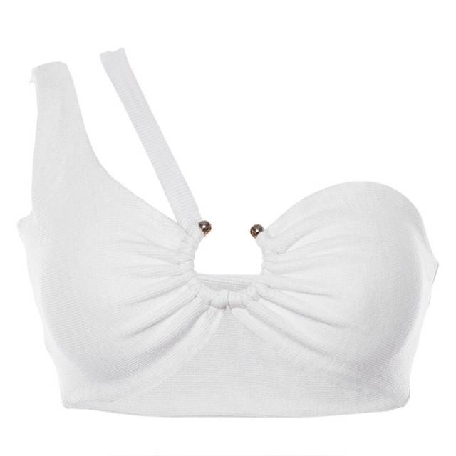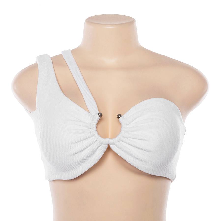 Top camisola de jersey de poliéster y licra con decoración de anillo de metal y una correa de hombro ahuecada