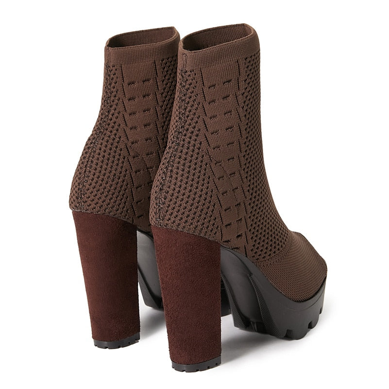 Stay warm with these knitted ankle boots. The stretchy fabric will fit your feet like a glove and feel very comfortable. The peep-toe design is perfect for a chill sunny day. The basic color makes it easy to pair with your favorite outfits.