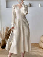 This is a gorgeous one-piece dress with a flattering fit that's perfect for a night out on the town. This dress is a great option for all-occasion wear. The textured material is soft to the touch and easy to wear on any occasion. The elegant pleated waistline is sure to become a favorite for any occasion.