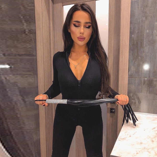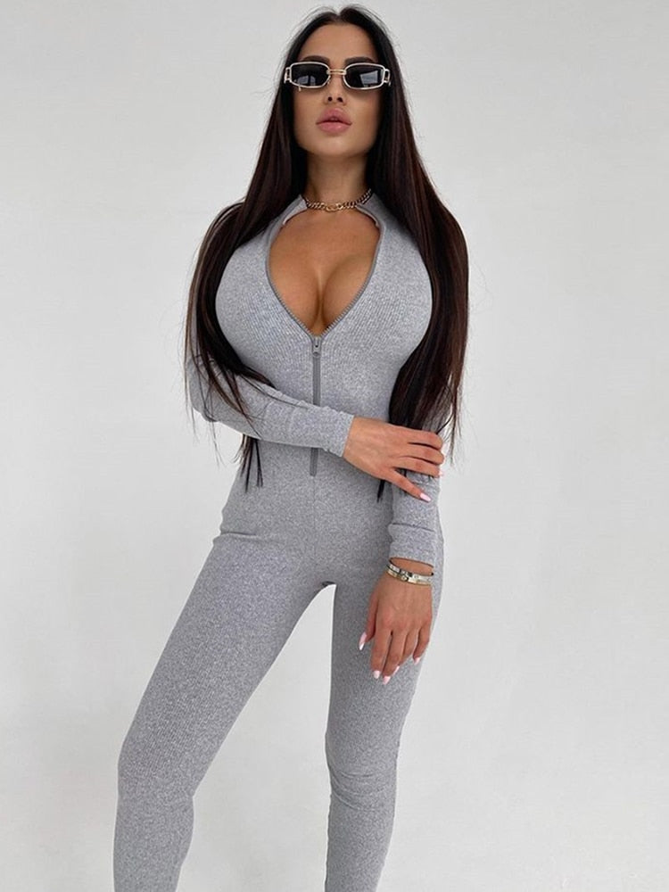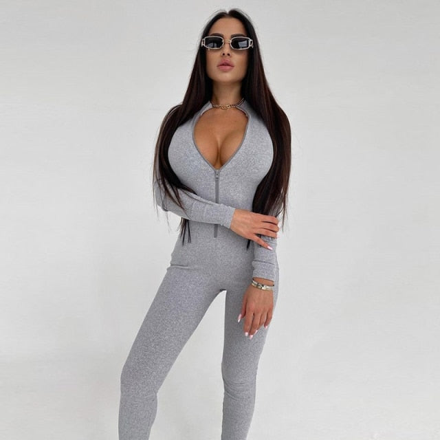 This chic jumpsuit is the perfect way to move freely and express your style. Featuring a comfortable stretch material and an easy zipper closure for an effortless, casual look, it is a must-have in the wardrobe of any woman. The long-sleeved style is perfect for warm days.