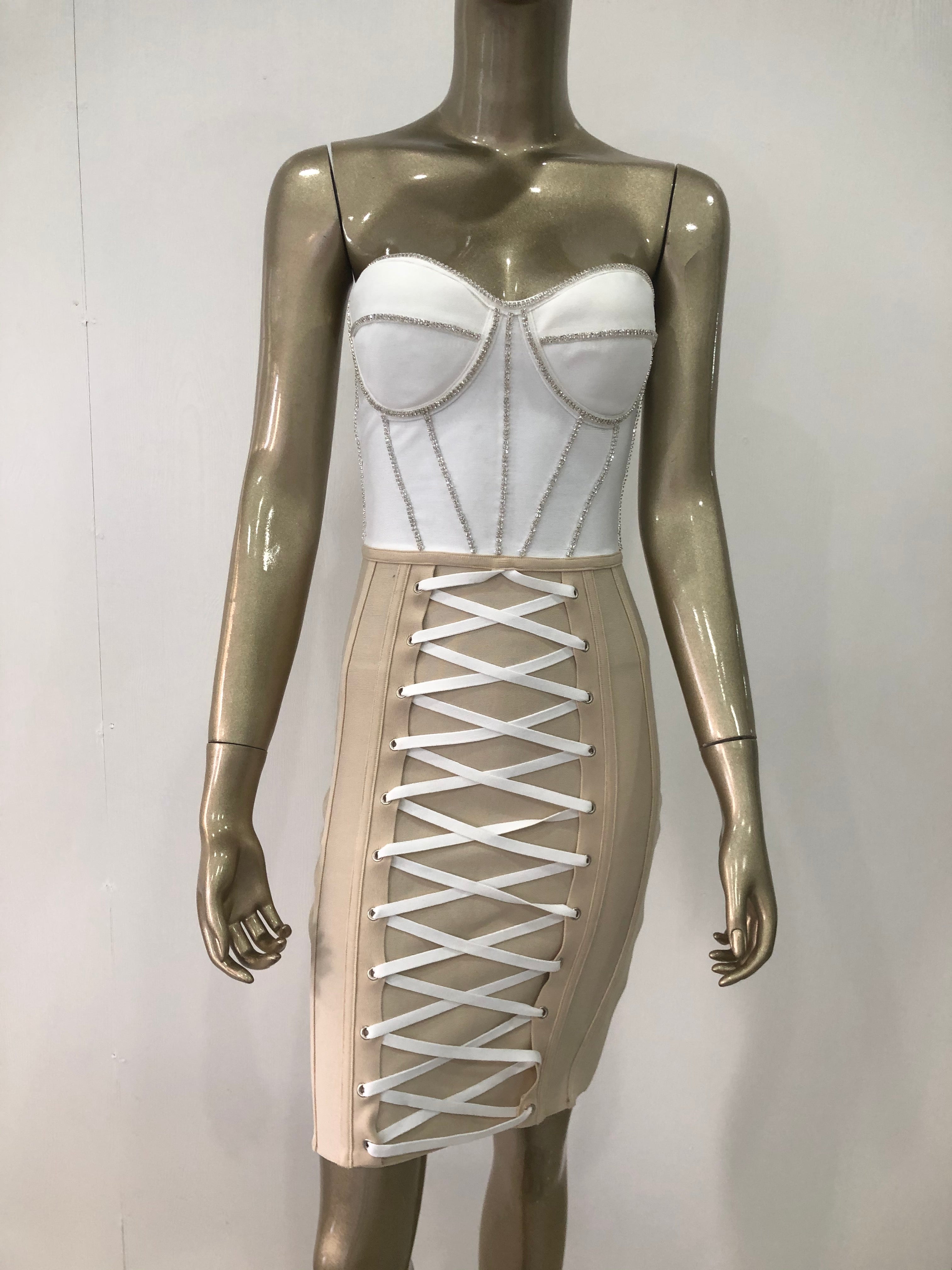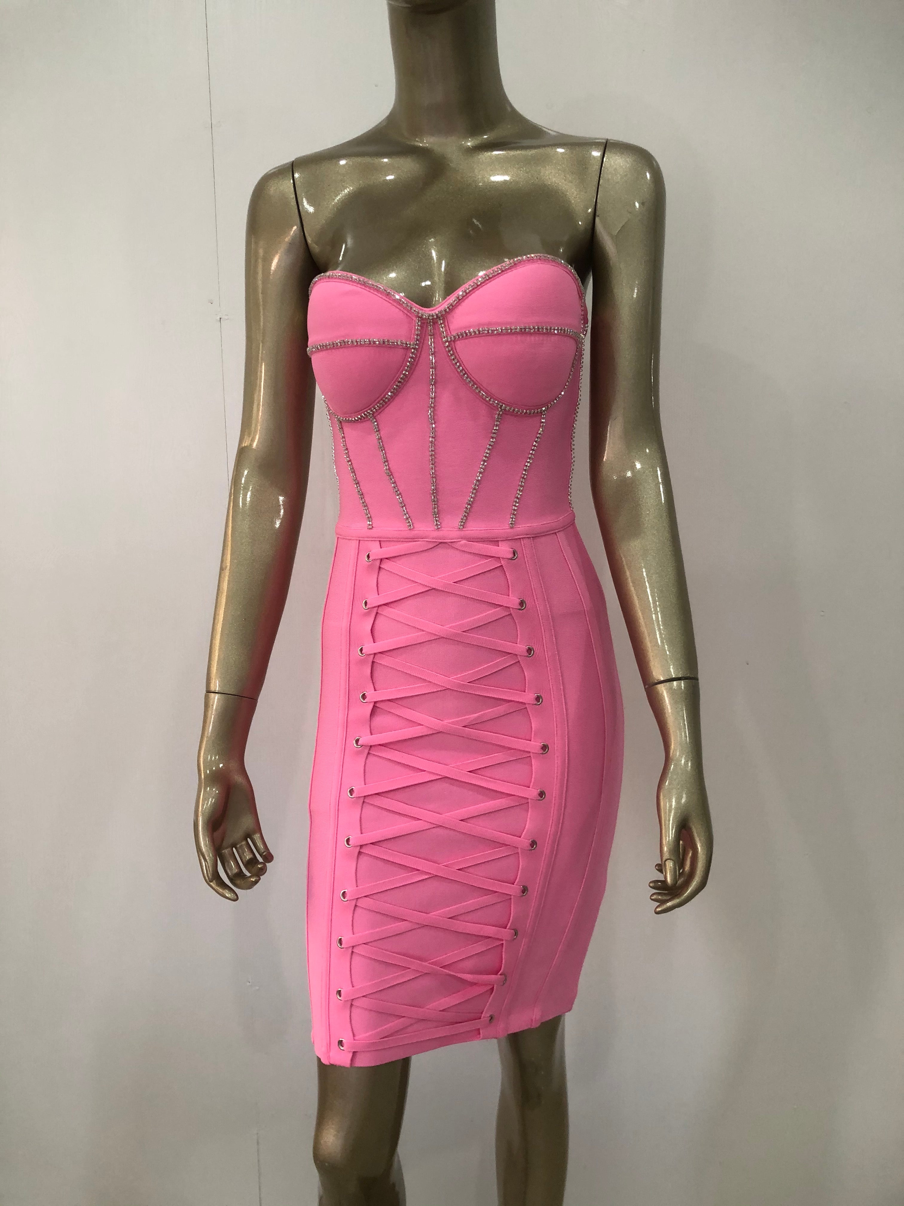 A stylish choice for a fun and flirty look, you'll love the feel of this sweetheart neckline mini dress that has a flattering cut. It features a unique front cross lace design. This simple yet beautiful dress is sure to become a favorite.