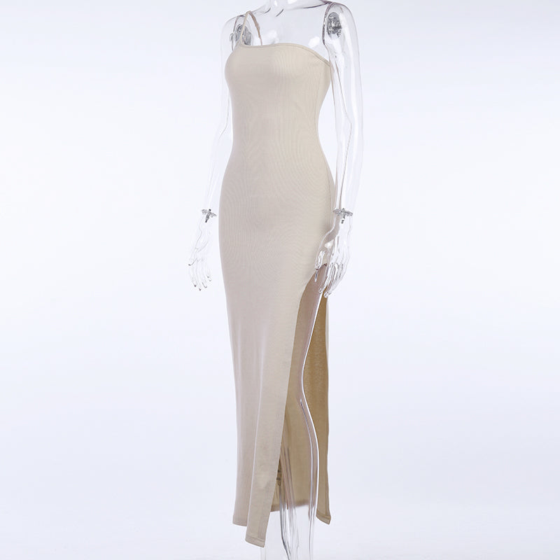 Vestido largo de algodón sólido de una tira con el tipo de tejido de punto y elástico