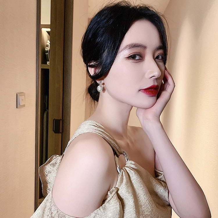 Aretes colgantes de aleación de zinc con diseño de piedra ovalada y redonda