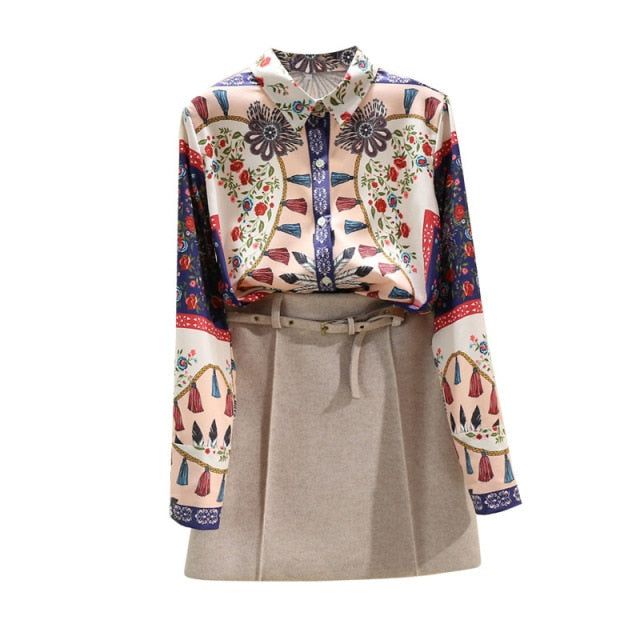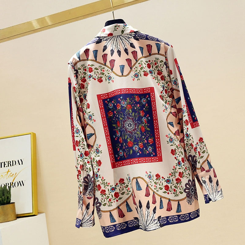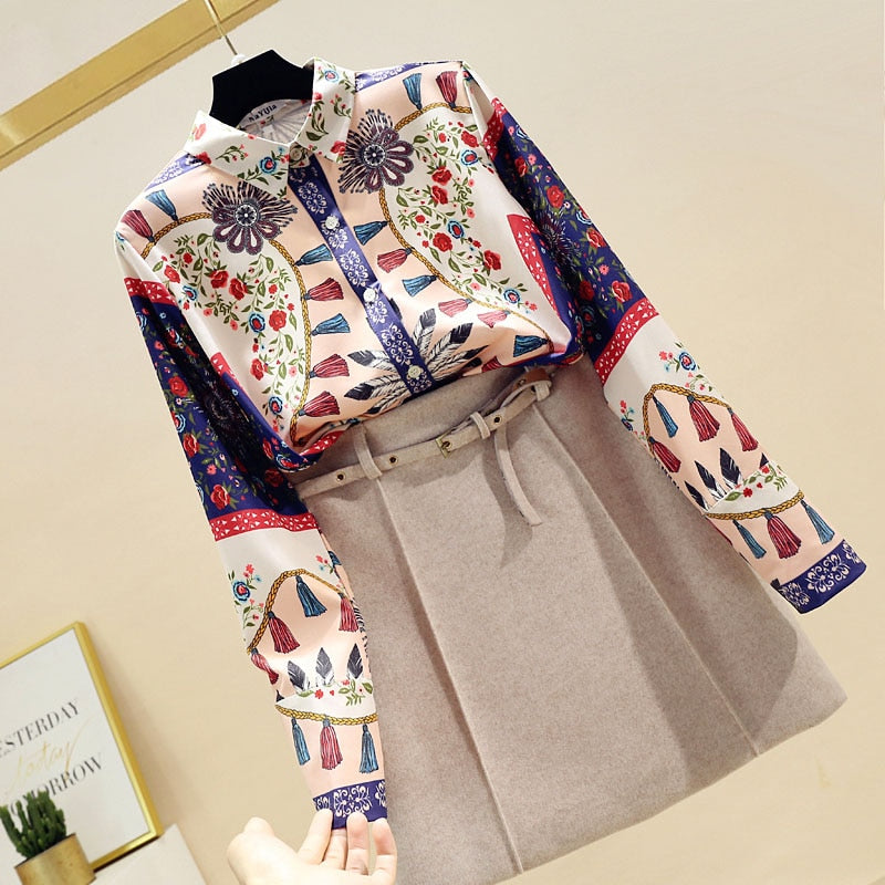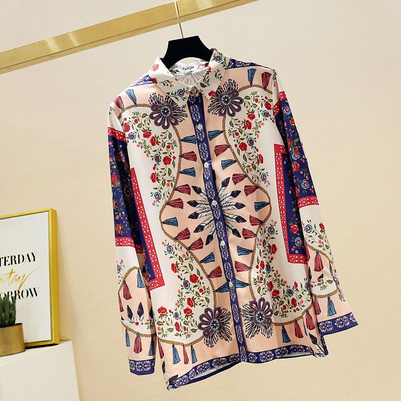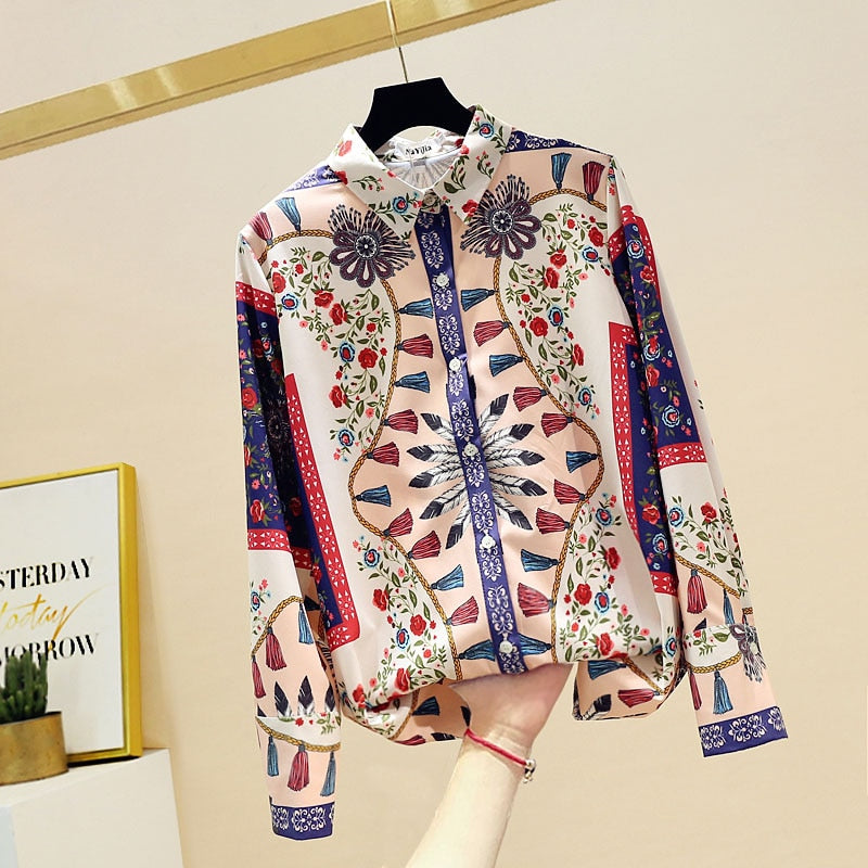 Camisa vintage con estampado floral con cuello vuelto y cierre de botón