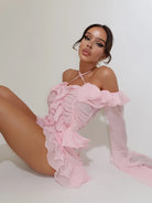 The Pink Mirage Skirt Set features playful ruffles and a mini skirt that sits above the knee, combining bold style with flirty charm. Made from a comfortable blend of cotton, spandex, and polyester, this solid-patterned set hugs your silhouette while allowing freedom of movement. Perfect for those who want to make a daring impression with a touch of softness.