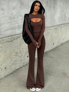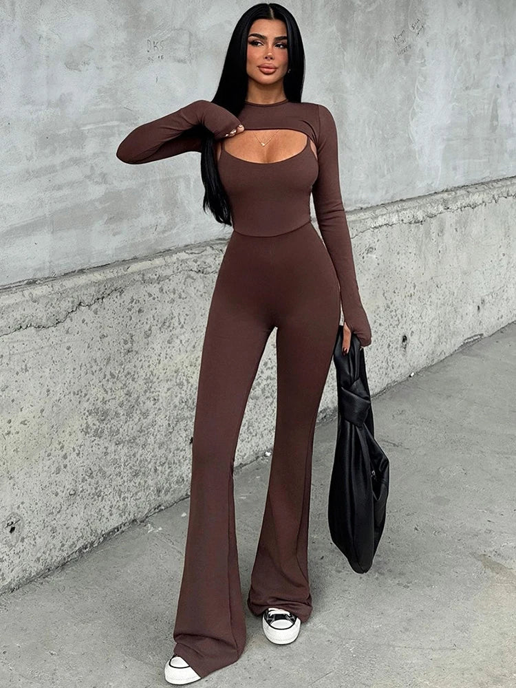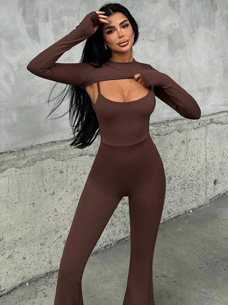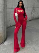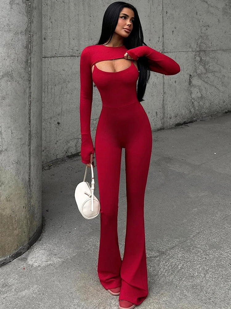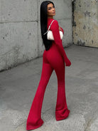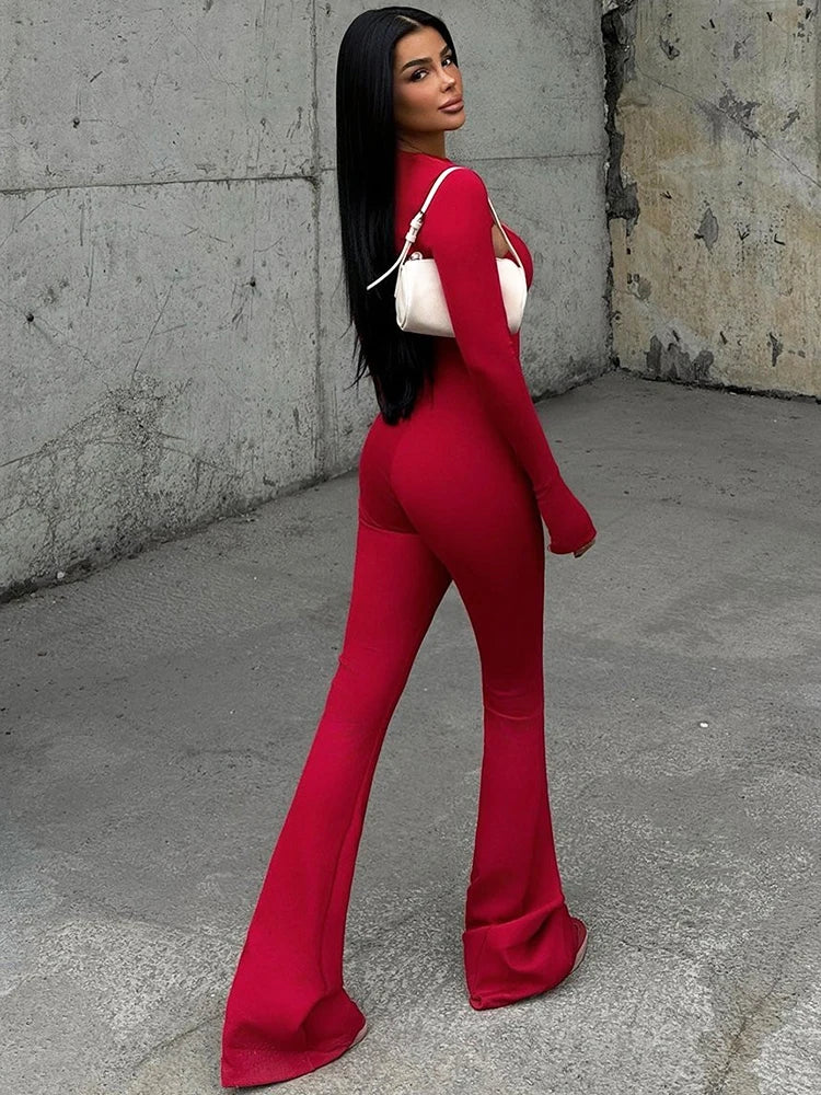 Step into bold elegance with the Polished Charm Jumpsuit. Crafted from a sleek blend of polyester and spandex, it offers a flattering full-length fit with daring flare pants that command attention. This standout piece moves with you, combining comfort and confidence for every fearless occasion.