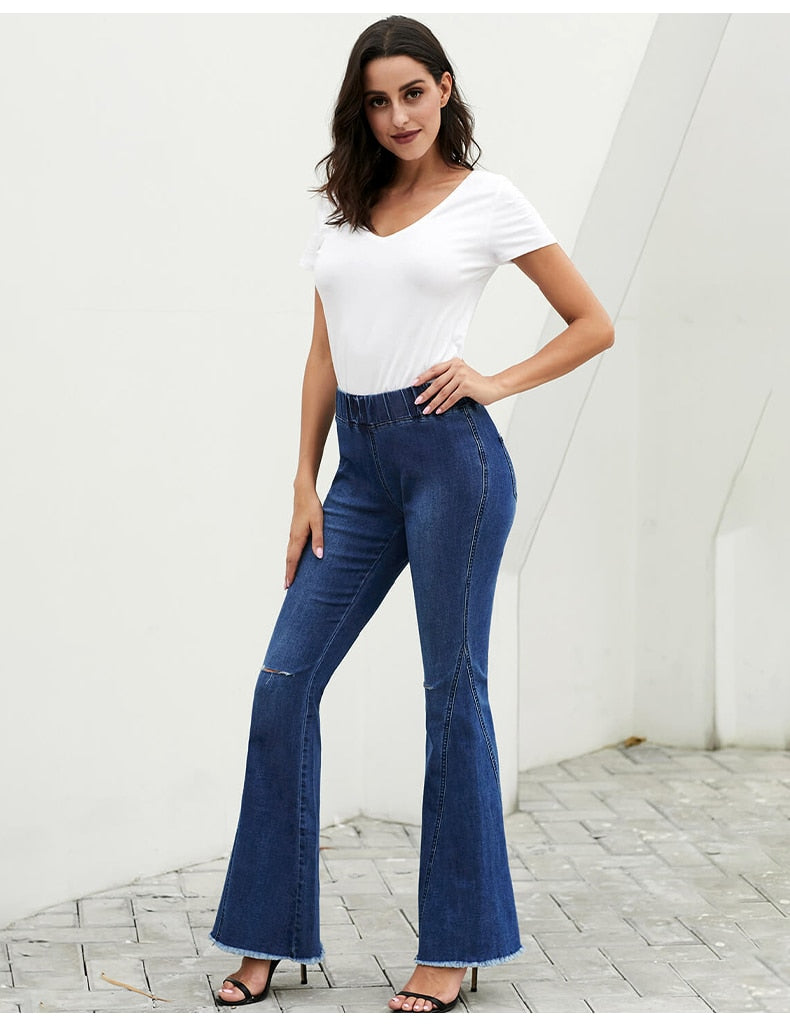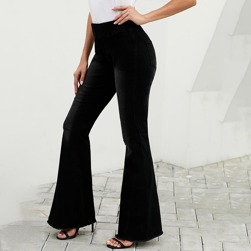 These women's jeans are a must have for every girl's wardrobe. Designed with a feminine flare, this simple and stylish pair of jeans has a wide leg for a flattering and curvaceous fit. Pair with a top and simple flats for an easy everyday look. These stylish jeans feature a high waist for an enhanced fit that leaves room for the perfect amount of your curves. The high-waisted denim style is a top choice for casual wear.