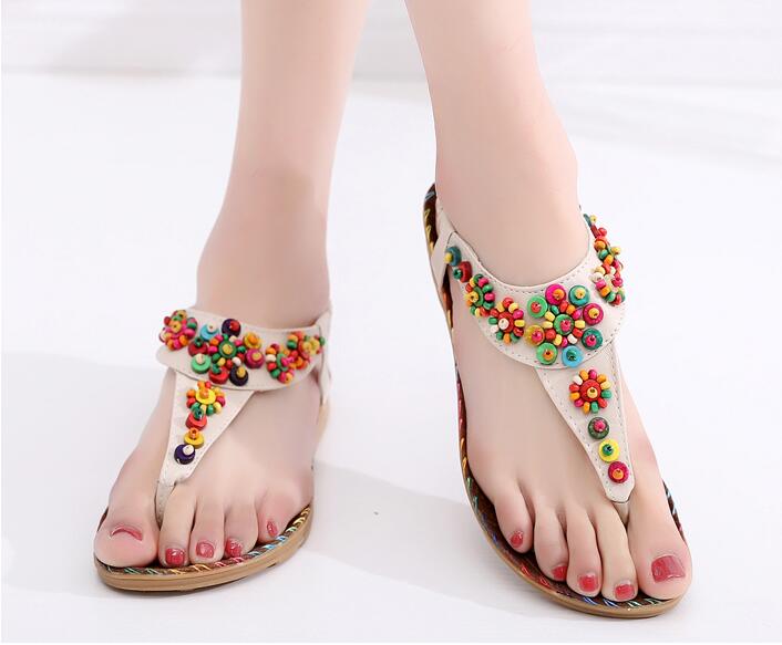 <transcy>Sandalias planas con flores arcoíris</transcy>