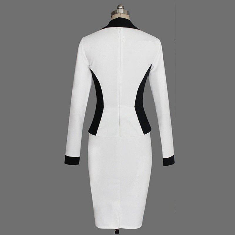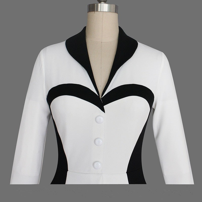 Vestido a media pierna con cuello en V y estampado de retazos de algodón, poliéster y licra