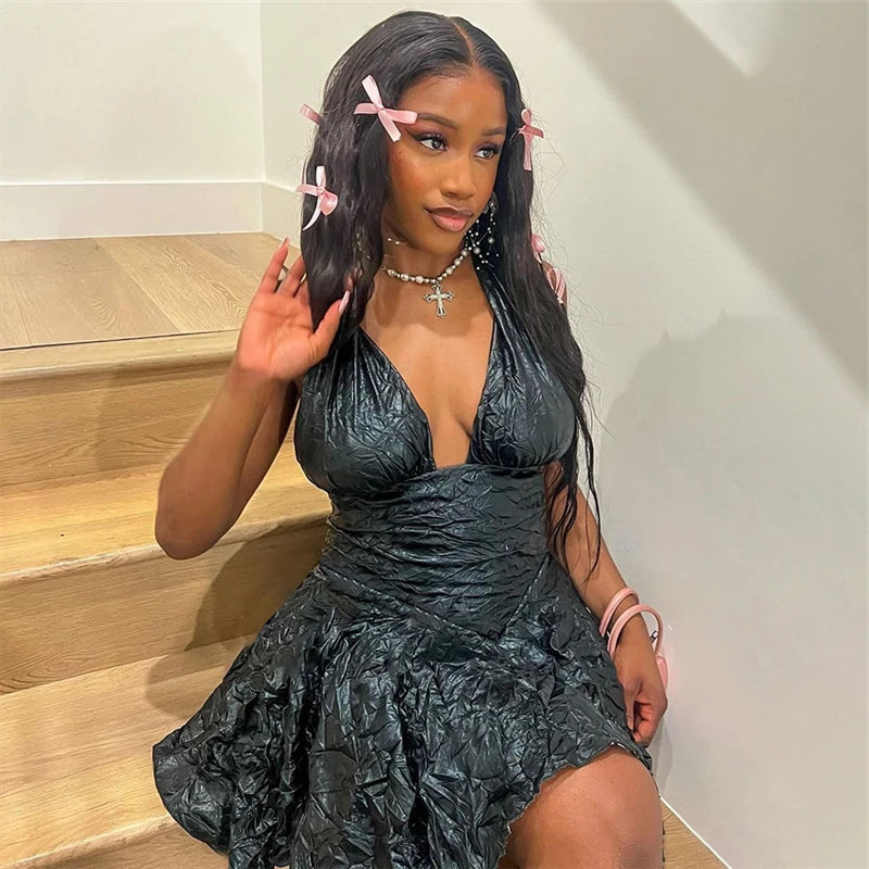 Unleash your sexy side with the Someone Called Home Mini Dress! This elegant V-neck dress features flattering folds that accentuate your curves. Made of soft and breathable polyester, it's perfect for any occasion, from a night out to a special event. Elevate your style with this mini dress that will make you feel confident and beautiful.