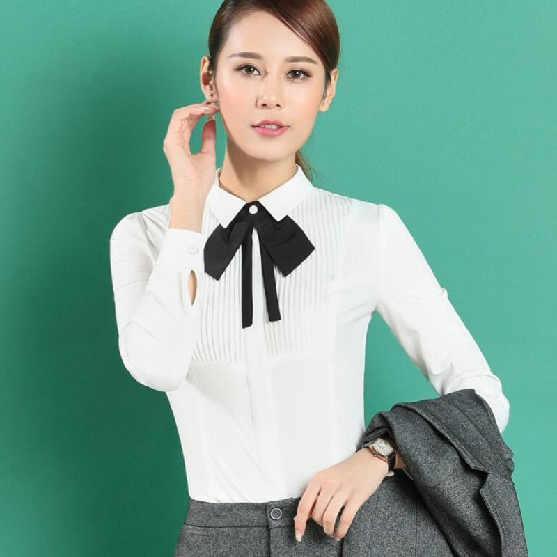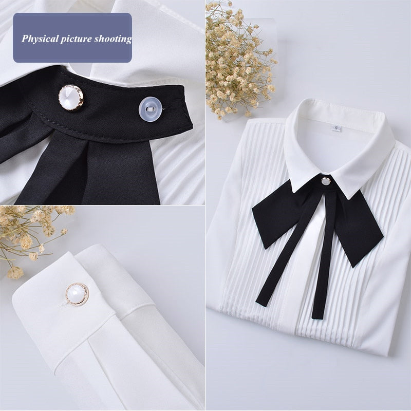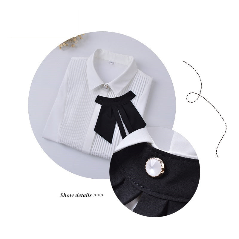 The perfect shirt is a must-have for a formal look. Feature black ribbon, it's perfectly complete with this white shirt. It has a long sleeve, so it's perfect to wear in cold water. The soft material makes it comfortable to wear.