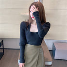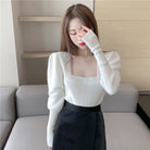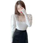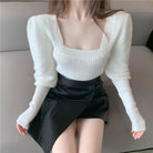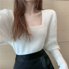 Suéter de cuello cuadrado con patrón sólido, tipo de tejido de punto y material de viscosa de nailon
