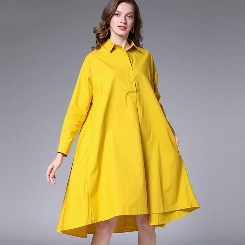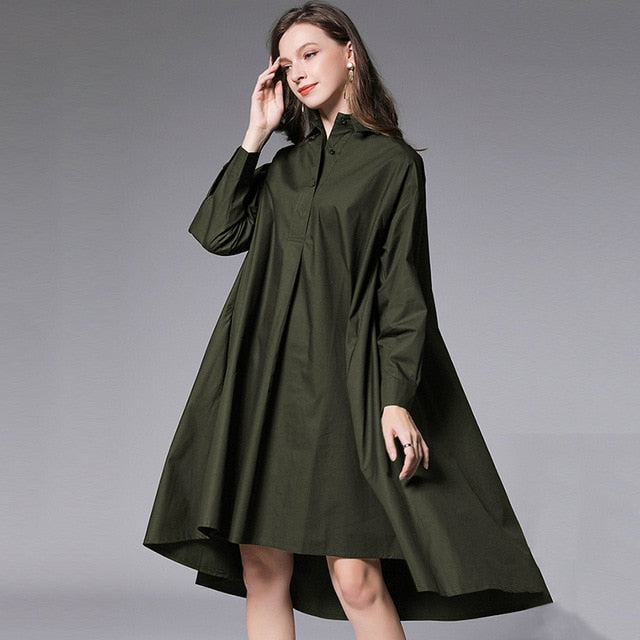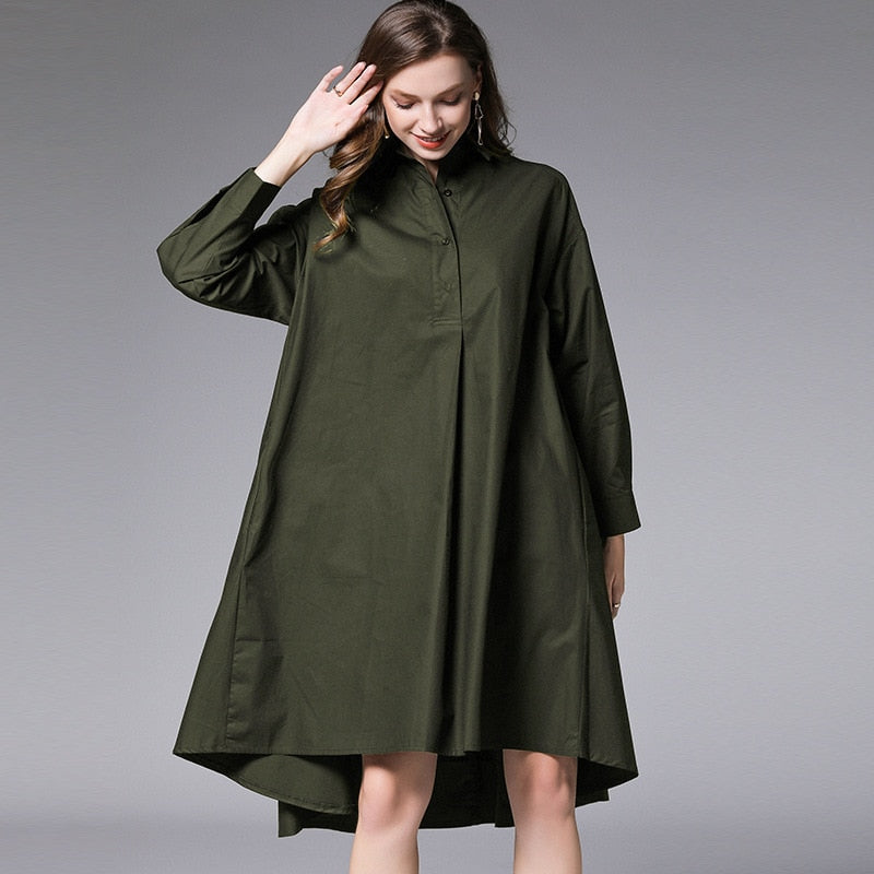 Minivestido de corte evasé holgado con color liso, cuello vuelto y material de algodón y poliéster