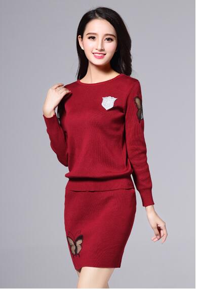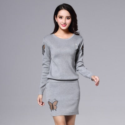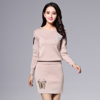 Conjuntos de falda de cintura elástica con patrón de mariposa, manga larga y cuello en forma de O