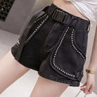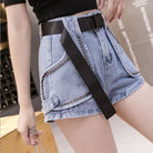Short de mezclilla de algodón y poliéster en cintura alta con cremallera