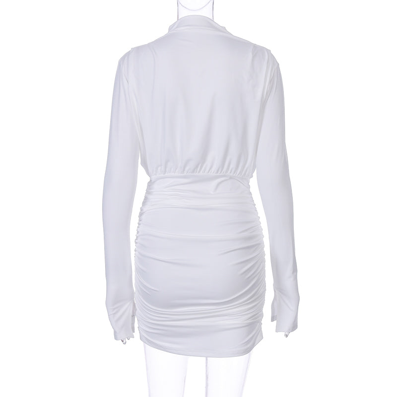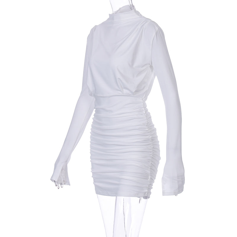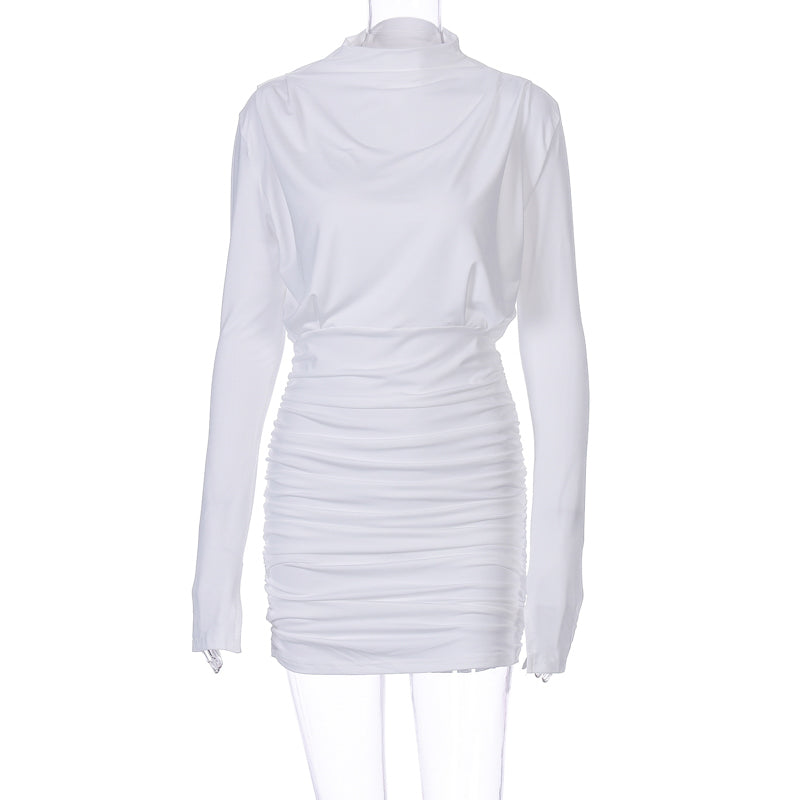 <transcy>Minivestido Streetwear de manga larga con cuello vuelto y fruncido para mujer</transcy>