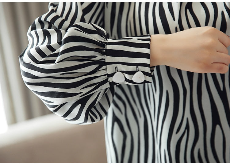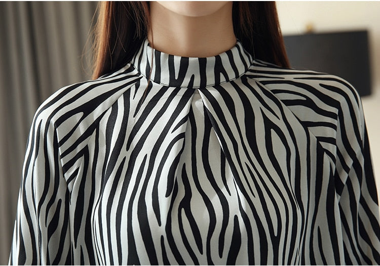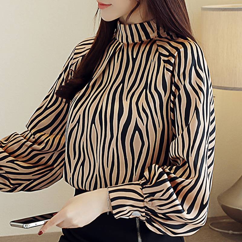 Blusa de manga larga con estampado de rayas acrílicas de acetato de poliéster de gasa