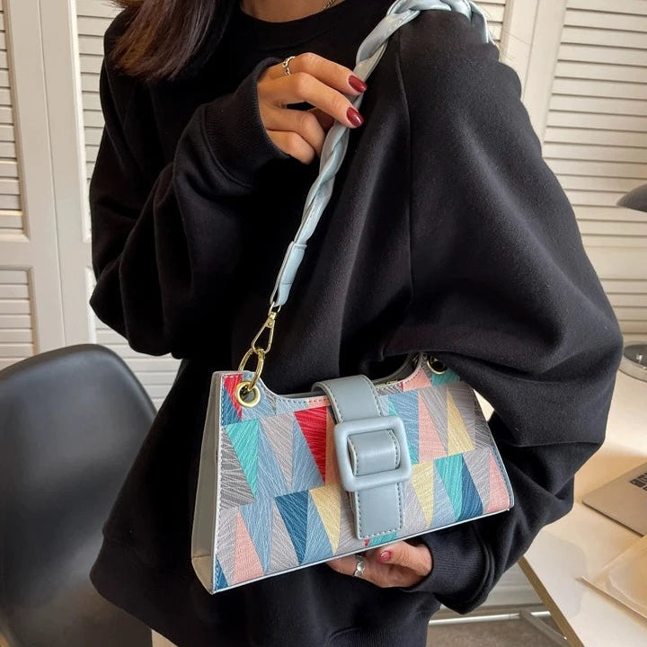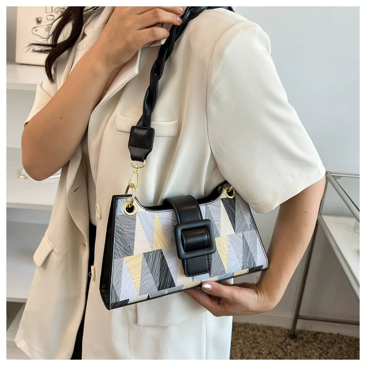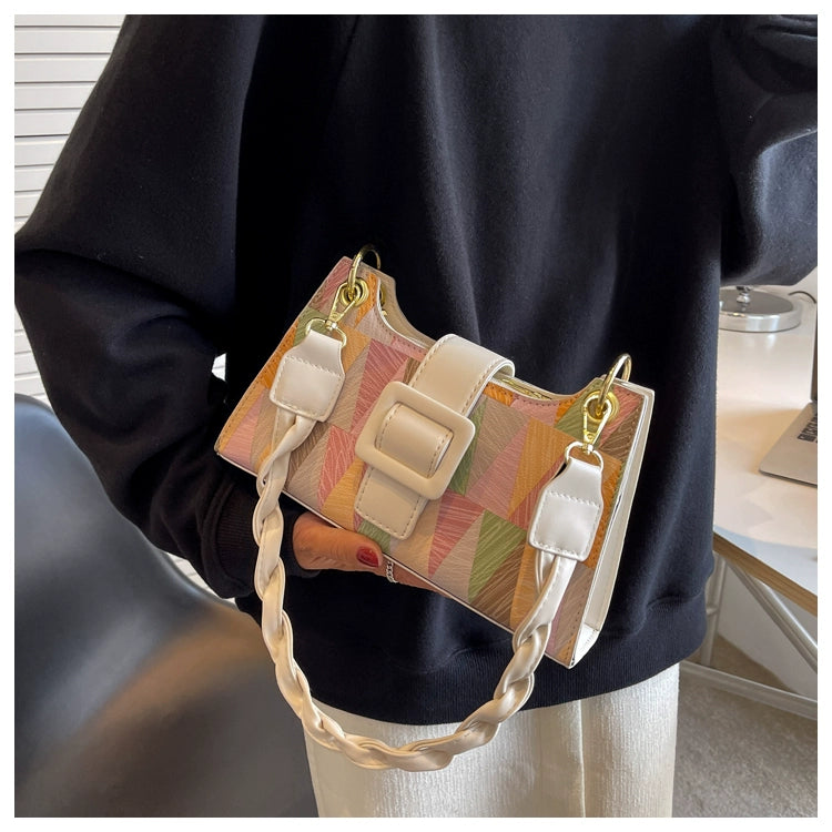 Looking for a stylish and practical bag? The Stuck In The Middle Shoulder Bag has you covered. Its magnetic buckle closure and polyester lining keep your belongings safe, while the compact size and PU material make it perfect for everyday use. Stay trendy and organized with this shoulder bag.