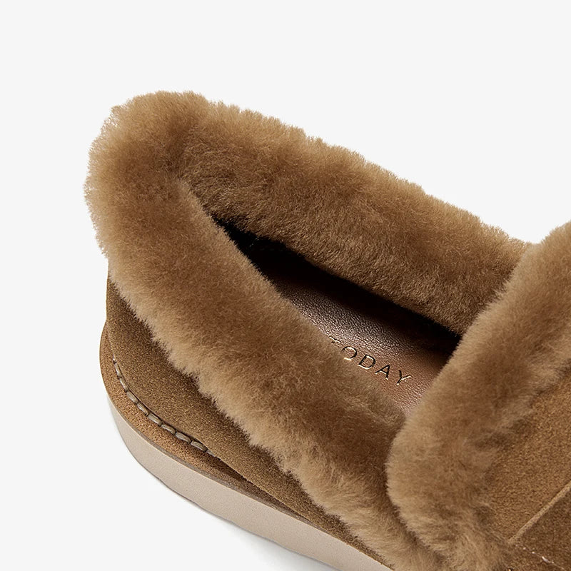 Suede Fur Design Platform Loafers