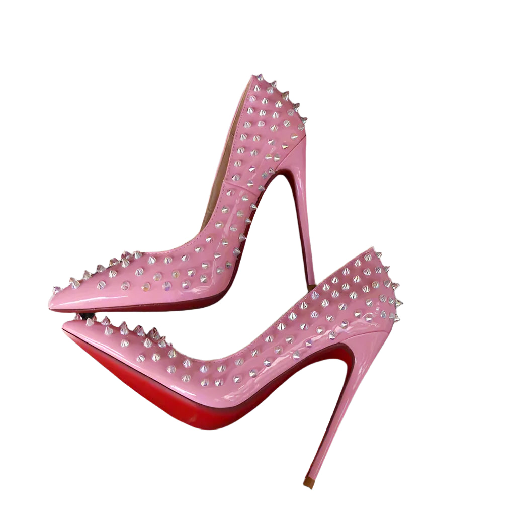 Step into bold elegance with the Sugar High Stiletto Shoes. Featuring a sleek slip-on design accented by edgy rivet details, these heels command attention and elevate any outfit. Perfect for those who dare to stand out, they combine striking style with effortless wearability.