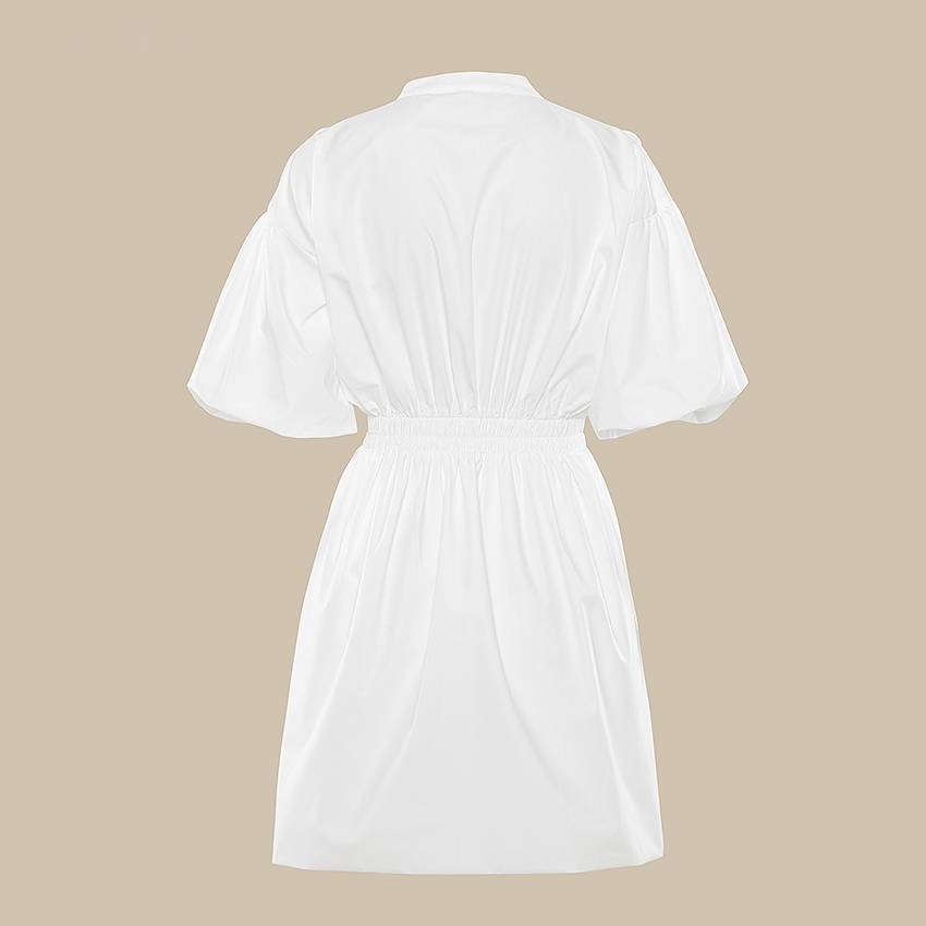 Minivestido de algodón y poliéster con cuello en V y manga abullonada