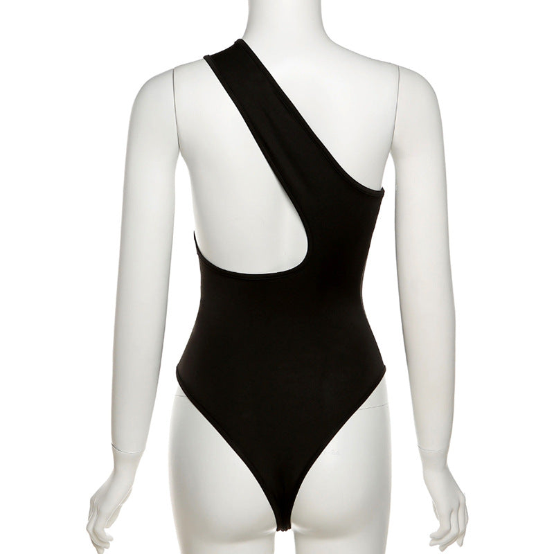 Body de un hombro con decoración ahuecada y cierre de botón a presión
