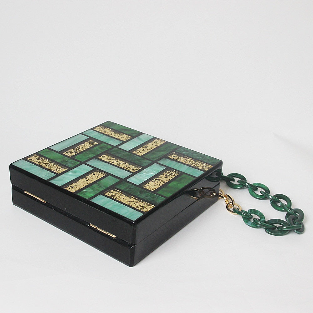 Clutch estampado geométrico con material de PVC y poliéster