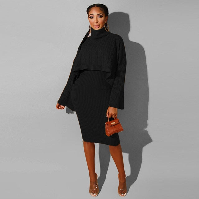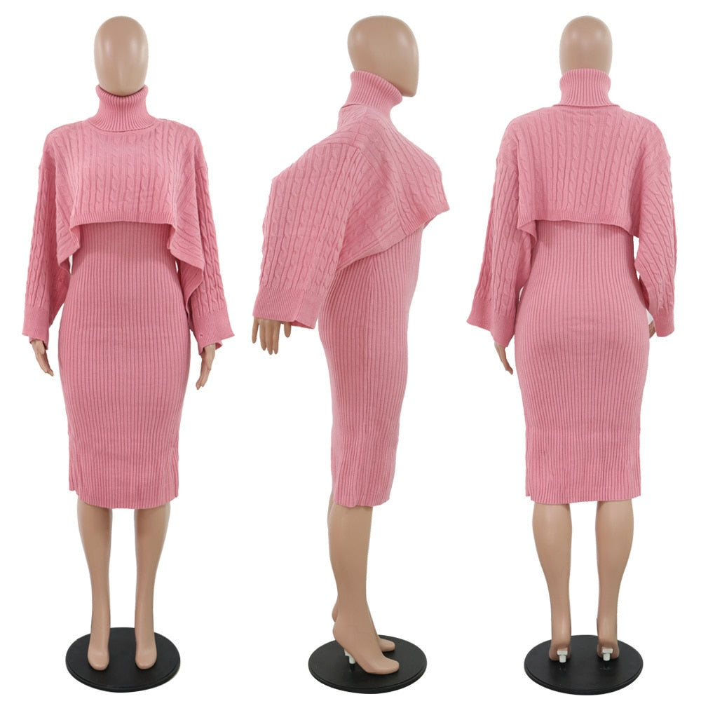 Vestido midi casual liso con cuello de tortuga, manga larga y material de poliéster