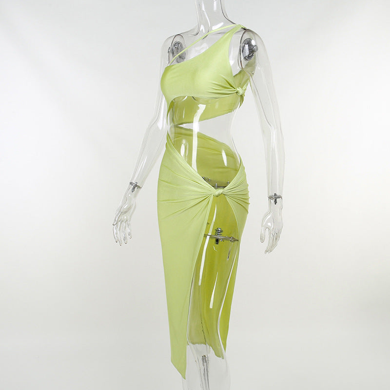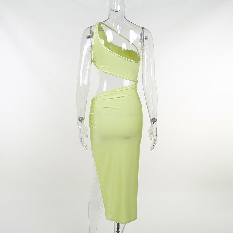 This chic midi-length dress is designed to fit and flatter every figure. It features a sophisticated one-shoulder neckline with a flirty hollowed-out design. The midi-length of the dress will ensure she can be comfortable and look elegant no matter where she goes.
