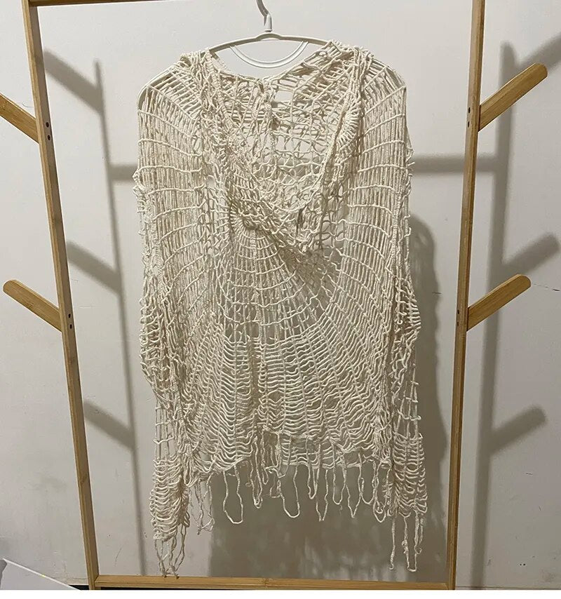 This Taking That Step Sweater is perfect for chilly days. It features a hollow out design for a unique and fashionable look, a hooded silhouette for added warmth, and a loose fit for maximum comfort.