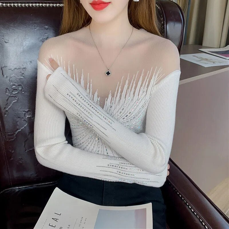 Stay warm and stylish in this sweater. The patchwork design is crafted from polyester and features an alluring hollow-out detail at the turtleneck. Perfect for cold weather while making a fashion statement.