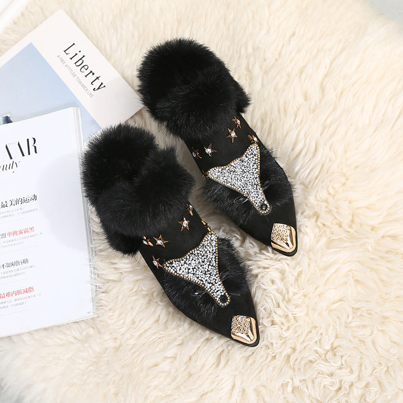 Keep your feet warm and your style on point with these ankle boots. The boots come in a black or gray color option with fur trim and a fox style on the front. The boots also have a rhinestone accent on the heel. The boots are great for cold weather and would look perfect with a sweater dress.