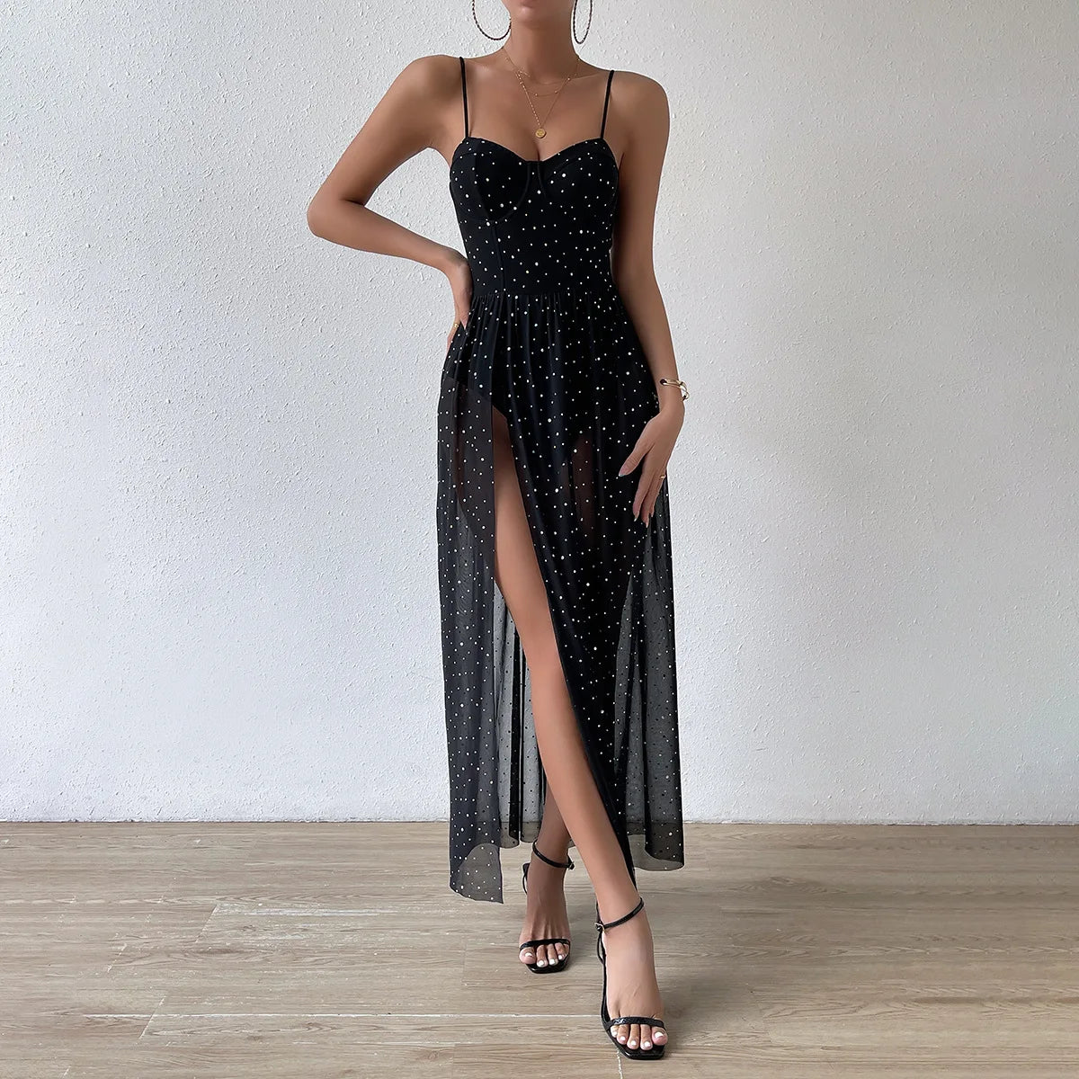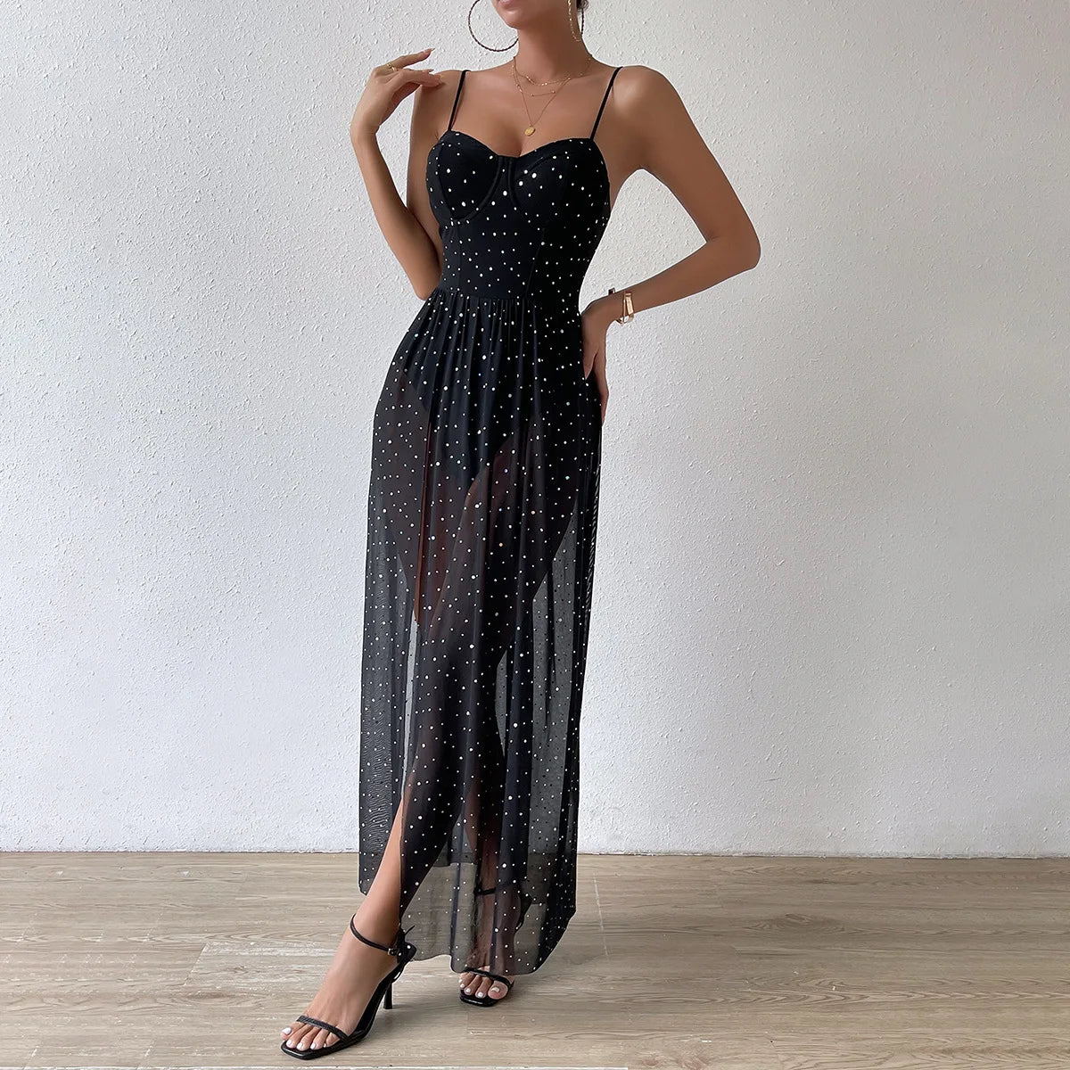 Unleash your inner diva with The Highest Highs Maxi Dress! This captivating dress features a loose silhouette that elegantly flows with your every move. Adorned with sparkly rhinestones and made from a blend of comfortable polyester and spandex, this sexy and club-worthy dress is perfect for any special occasion. Make a statement with this ankle-length stunner!