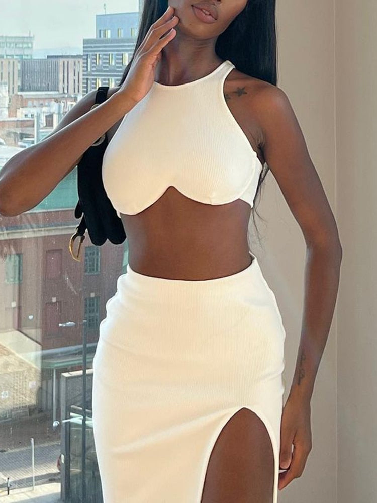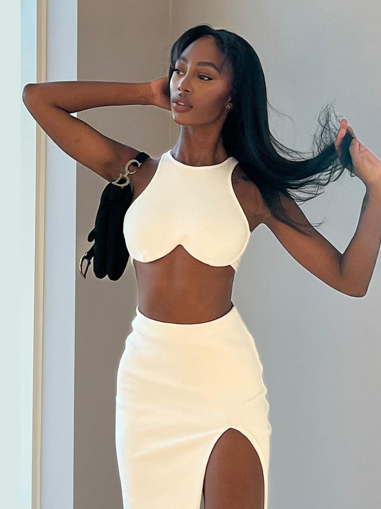 This stylish and elegant skirt set is a versatile option for any occasion. This stylish style is available in three colors option to ensure it goes with everything. The comfortable and easy-to-wear fabric is long-lasting and easy to care for. Stylish and comfortable, this skirt is perfect for any occasion.