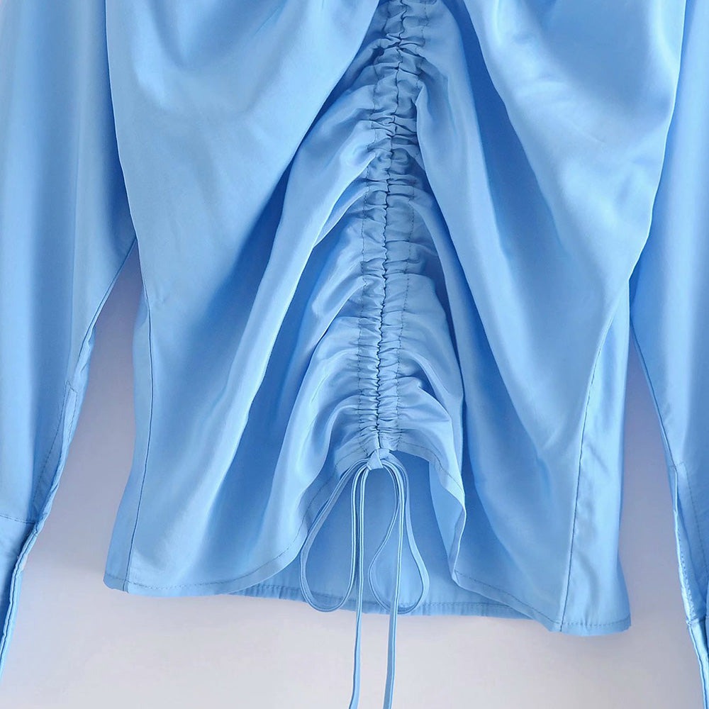 Striking a balance between modern-day sophistication and laid-back casual style, this sophisticated blouse is sure to be a staple in any wardrobe for years to come. Made from a soft, breathable polyester fabric, it's a perfect wardrobe piece for both casual and formal wear. The long sleeves and v-neck give it a modern-day elegance that you'll love to wear. The ruched design and subtle color helps this blouse stand out. The beautiful blue color is a versatile choice that looks great with other pieces.