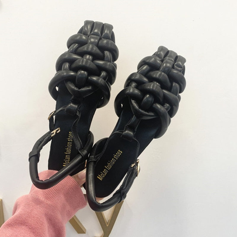 Add a contemporary twist to any outfit with these stylish ankle strap sandals. Complete with a soft leather upper and a braided strap, it's a practical and stylish way to spice up your look. A soft synthetic sole offers a smooth and comfortable walk.