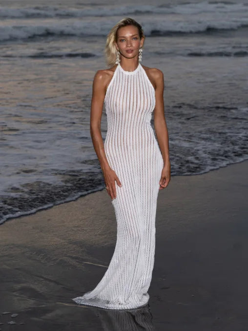 Indulge in timeless elegance with our long dress! Made with soft and stretchy polyester and spandex, this sleeveless dress features a classic striped design that will never go out of style. Perfect for any occasion, this dress is a must-have in your wardrobe!